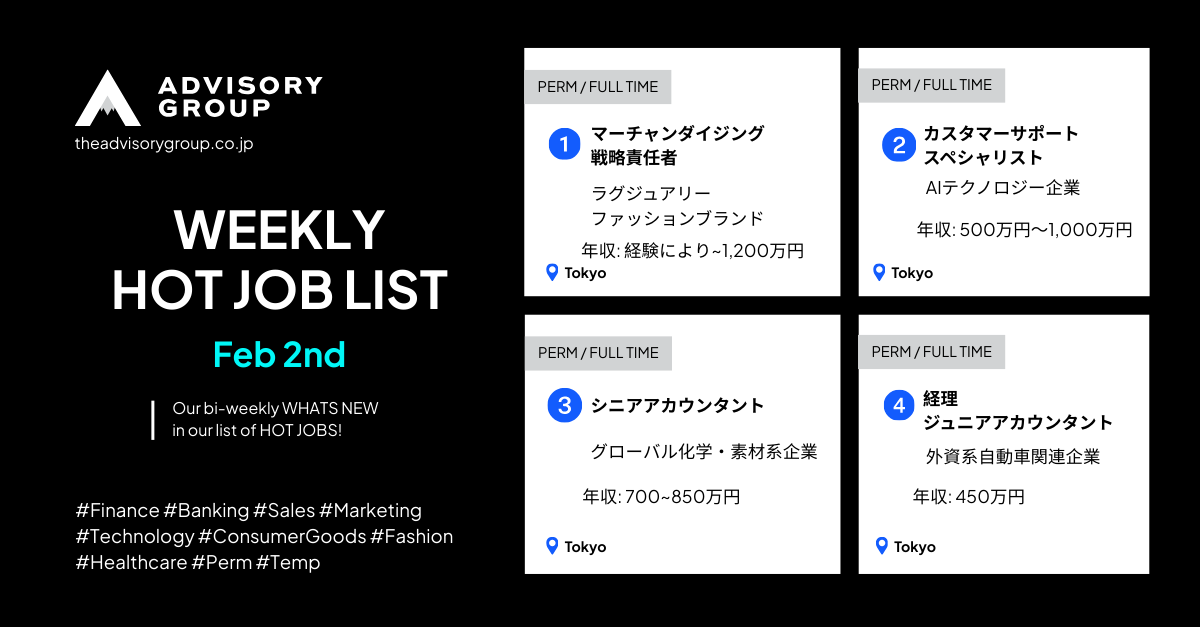 January 30, 20265 min注目求人情報(2月2日) HOT JOB LIST | Feb 2nd