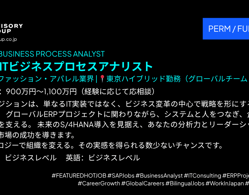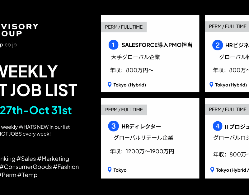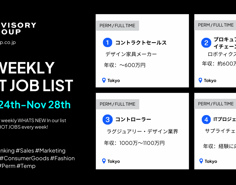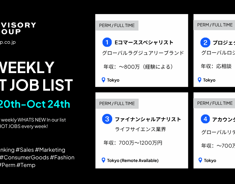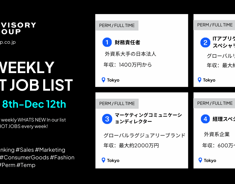 Advisory Group K.K. が毎週更新する「注目求人情報」カテゴリー。外資系・グローバル企業を中心に、アカウンティング、IT、セールス&マーケティングなど幅広い分野の最新キャリアチャンスをご紹介しています。転職やキャリアアップを目指す方はぜひご覧ください。