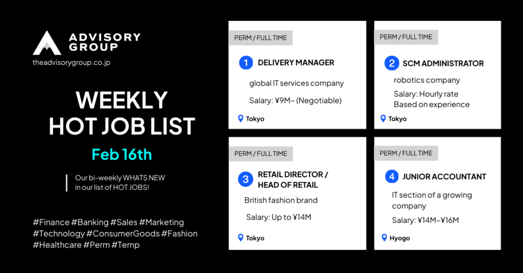 Apply to: Berlino Chang( berlino@theadvisorygroup.co.jp )